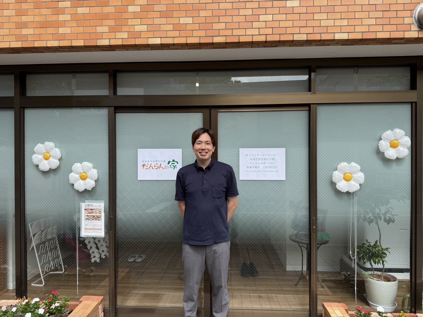 事業所の様子 事業所概要 事業所番号1392301337事業所名だんらんの家 一之江所在地東京都江戸川区西一之江3-1-2指定年月日令和7年9月1日指定有効期限令和13年8月31日サービス種別地域密着型通所介護TEL03-6231-4502FAX03-6231-4549アクセス都営新宿線一之江駅より徒歩18分都営バス西一之江四丁目より徒歩2分 管理者よりご挨拶 管理者:大塚 孝之 開放的で陽当りが良く、明るいリビングでお出迎えします。小規模だから出来る細やかな気配りで、ご利用者さまもご家族さまもスタッフも、みんなが笑顔でいられ安心できる場所を作っていきます。よろしくお願いいたします!